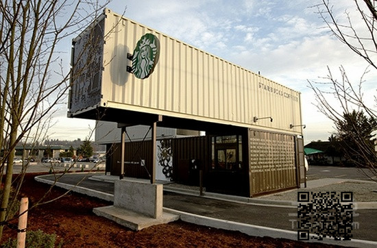 星巴克再引时尚潮流,于2012年在美国西雅图边境城市Tukwila开起了全球第一间由集装箱门市,叫做“reclamation drive-thru”。这间集装箱门市由其内部团队打造,不仅通过了Leed的绿色建筑标准,其外观更是精美时尚。